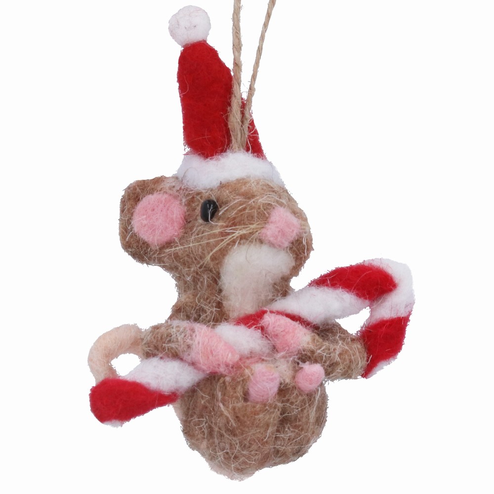 Mixed Wool Mouse with Candy Cane Decoration