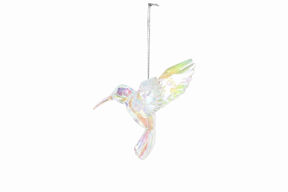 Bring a touch of iridescent charm to your festive décor with this rainbow acrylic hummingbird decoration. Its shimmering finish catches the light beautifully, adding movement and sparkle to your Christmas tree or year-round displays. At a Glance Type: Hanging Decoration Material: Acrylic Dimensions: (LxWxD) 7x9x10cm Finish: Iridescent, light-catching acrylic Colour: Rainbow effect with translucent tones Placement: Christmas tree, window display, or decorative branches Why We Love It This delicate hummingbird design feels magical and uplifting, perfect for adding a contemporary sparkle to your festive styling. Its iridescent finish reflects different colours as it catches the light, creating a dynamic and eye-catching look. Sustainability Note Crafted from durable acrylic for long-lasting use, designed to be a reusable piece in your festive collection. Delivery & Returns For delivery details, please see our Deliveries & Returns page.