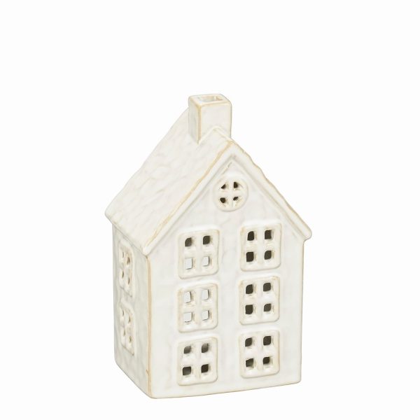 This charming ceramic tealight holder brings a warm, homely glow to your festive décor. Designed in the shape of a traditional townhouse, the soft off-white glaze gives a timeless look that complements any interior, from cosy cottages to contemporary homes.