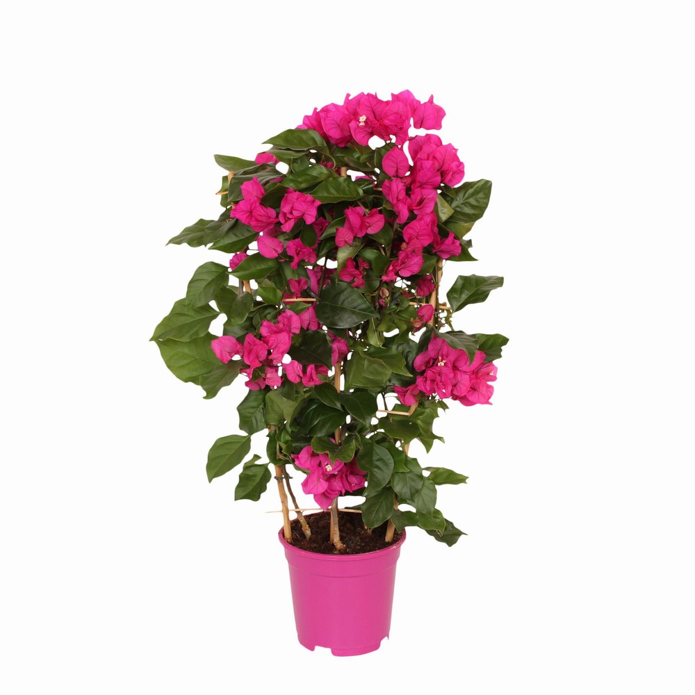 Plant in a sunny, sheltered spot with free-draining soil. Water regularly in summer and feed monthly for the best flower display. Bring indoors or protect in winter—Bougainvillea thrives with warmth, light, and a little TLC!