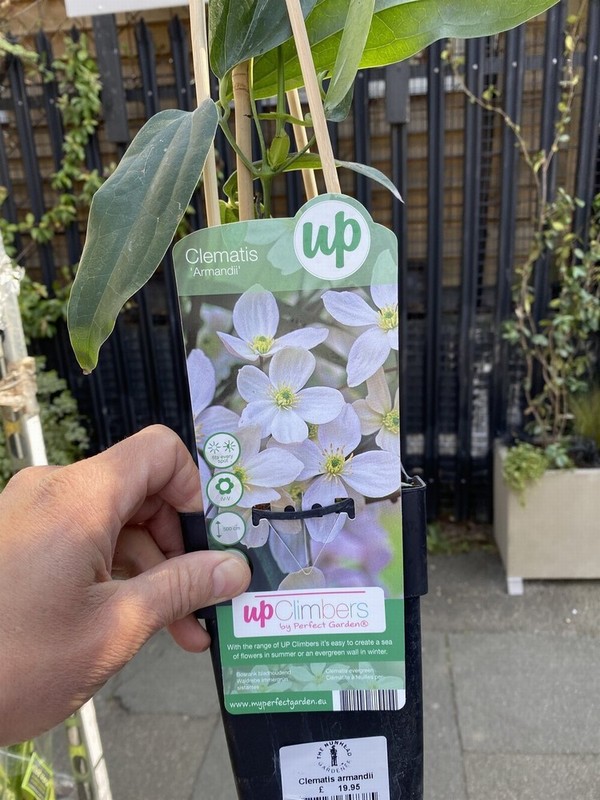 Clematis Armandii £17.95 Out of stock SKU: 10000000000001189 Category: Climbers Opens in a new window Tweet This Product Opens in a new window Share on Facebook Opens in a new window Pin This Product Opens in a new window Mail This Product