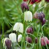 Pretty, pendent, white and pinkish-purple bells with distinctive checkerboard markings on slender stems in April and May. These delightful snake’s head fritillaries are perfect for naturalising in a moist woodland edge or wildflower garden. While they can tolerate drier conditions, they will prefer a spot where the soil remains moist in summer.