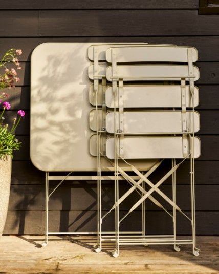 A simple, well-made outdoor chairs and table designed for easy, everyday use. With its clean clay finish and compact folding design, it’s ideal for South London balconies, patios and smaller garden spaces—easy to bring out when the sun appears and just as easy to tuck away when not in use.