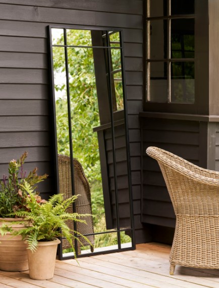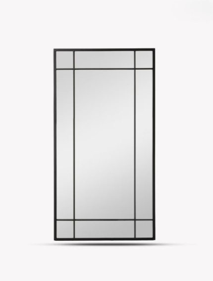 A striking, full-length mirror that brings a refined Art Deco elegance to any space. The Ledwell Panelled Mirror combines clean lines with a bold black iron frame, creating a timeless piece that enhances light while adding architectural interest to your home or garden.