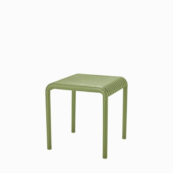 A simple, versatile outdoor stool designed for relaxed, everyday use. With its clean lines and soft olive finish, it works effortlessly across gardens, balconies and terraces—whether used as extra seating, a footrest or a compact side table.