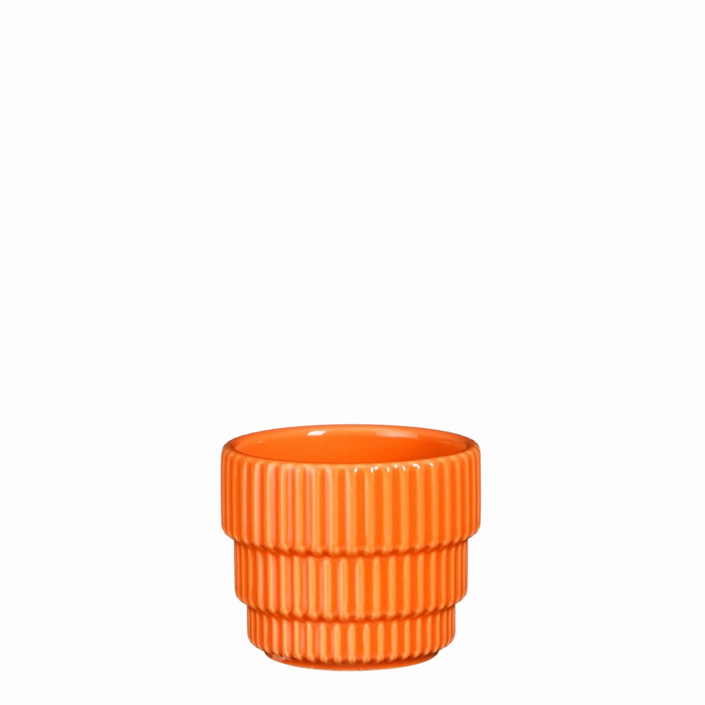Add a bold pop of colour to your indoor planting with this vibrant orange ceramic pot. The ribbed, tiered design brings a playful, architectural feel, while the glossy finish enhances its rich, energetic tone. Compact yet full of character, it’s perfect for brightening shelves, desks or windowsills.