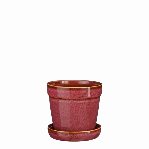 Add a rich, rosy warmth to your indoor planting with this beautifully glazed ceramic pot. The soft pink-red tones are deepened by a speckled finish and finished with a warm, contrasting rim, giving it a subtle handcrafted feel. Complete with a matching saucer, it’s as practical as it is decorative—perfect for everyday use.