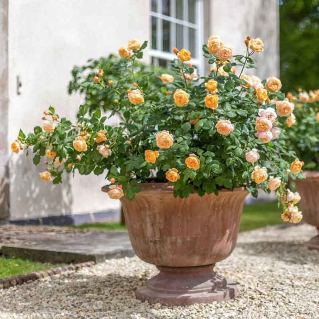 Because roses are such hungry plants, planting them in pots isn’t ideal. But it is possible. You might want to grow a climber up the side of the house where there’s no soil, or pop one on a sunny patio. They’ll just need a little more care and attention than a rose that can get its roots deep down into the soil for its water and nutrition needs. This means using a rich soil-based compost, replacing the top 5-10cm every year with fresh compost, keeping up a good watering regime and feeding in the growing season (your best bet is a specialist rose feed). A generous mulch of composted bark in spring will keep weeds from setting seed and competing for food and water.